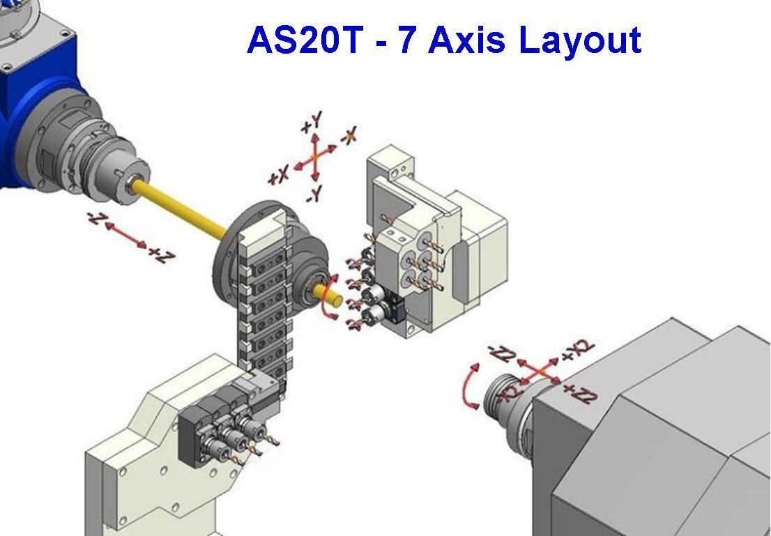 The Swistek AS20T is our 20mm mill/Turn CNC Screw Machine. The AS20T comes standard with a M70 Mitsubishi 7-Axis 64 Bit Controller, simultaneous sub-spindle, 4 live cross working tools, C-Axis on the Main and Sub-Spindle, part conveyor, chip conveyor and broken cut off sensor. This7-axis Swiss screw machine is very economical and is capable of manufacturing easy-to-complex parts at a very competitive price. Non-Guide Bush Type machines are generally for manufacturing parts under 3.5 x Bar Diameter overall part length.